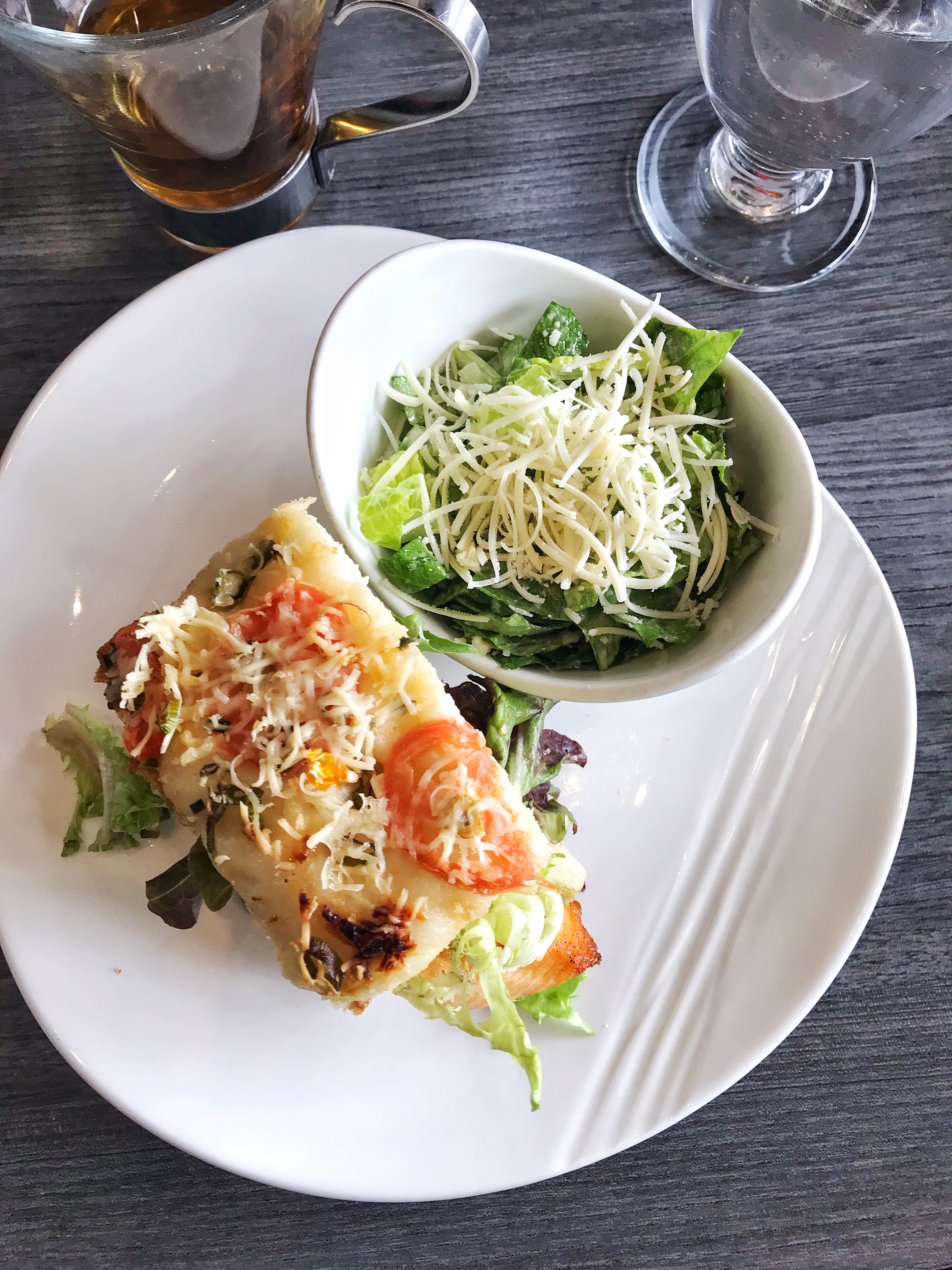 All sandwiches are served with choice of soup, fries or a small salad. I chose a Caesar salad (with no croutons) which costs extra