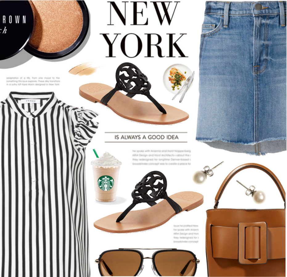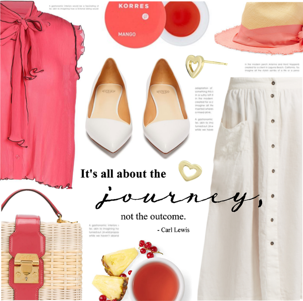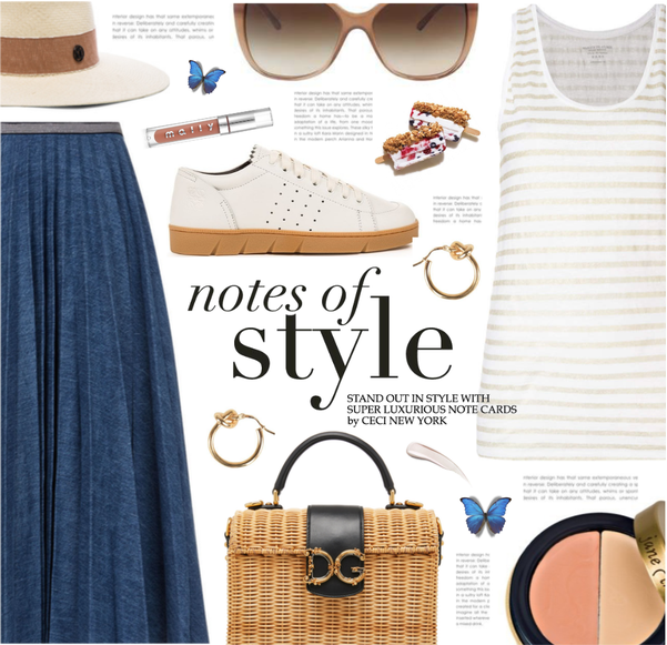 Personally, I like to match my footwear either with the top or accessories. As far as bags are concerned, I tend to pick straw or wooden ones during the season.