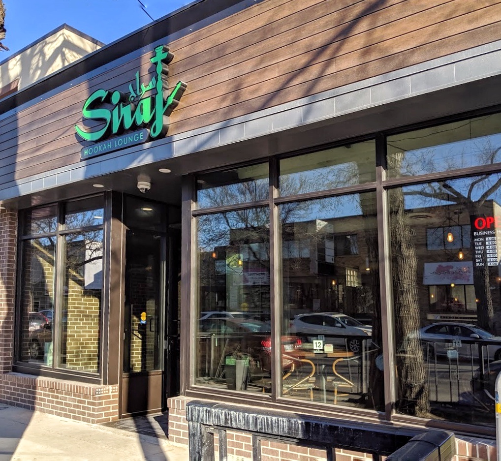 The dining area is on the right when you enter, followed by the sports bar across from the hookah lounge. The patio is open during the summer at the front of the restaurant.