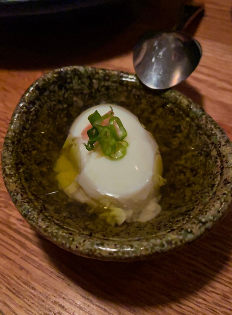 Description: Oeuf parfair, awase dashi, huile de truffe (tiède) | Perfect egg, awase dashi, truffle oil (lukewarm)
