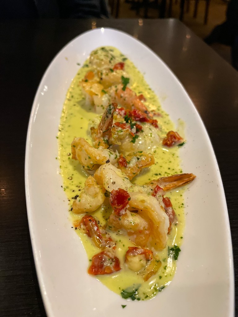 We began with the Gamberetti Genovese, a dish of prawns, sundried tomato, and pesto cream. Our waitress — super friendly and just the right amount of persuasive — said the sauce was that good and we’d better get some bread to soak it up.. Naturally, we obliged and ordered focaccia — warm, soft, and just the right amount of chewy. And yes, she was right — that sauce deserved every last crumb of bread. A solid start.
